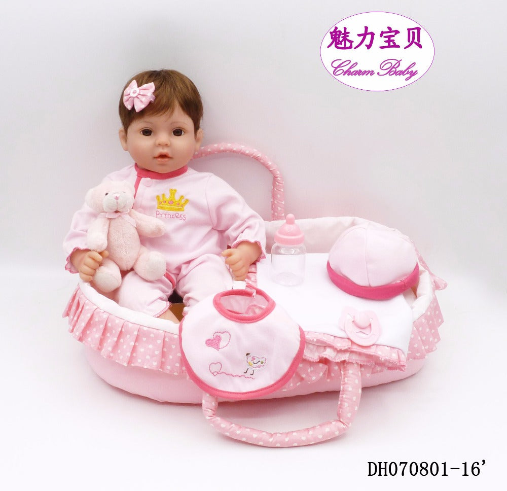 16" New Design Girls Pink Baby with Basket for Birthday Xmas Gifts 40cm Soft Reborn Doll Playtime Bedtime Toy Limited